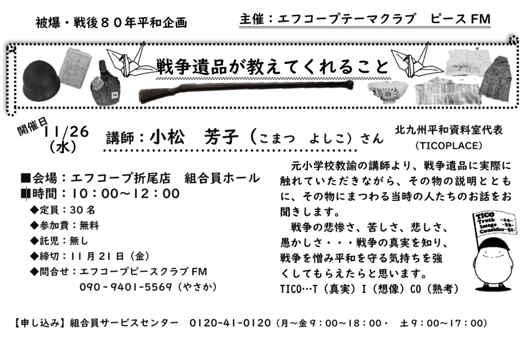 よかったらお出でください。(折尾のエフコープ店の店舗横から入った所にある部屋で行います。)