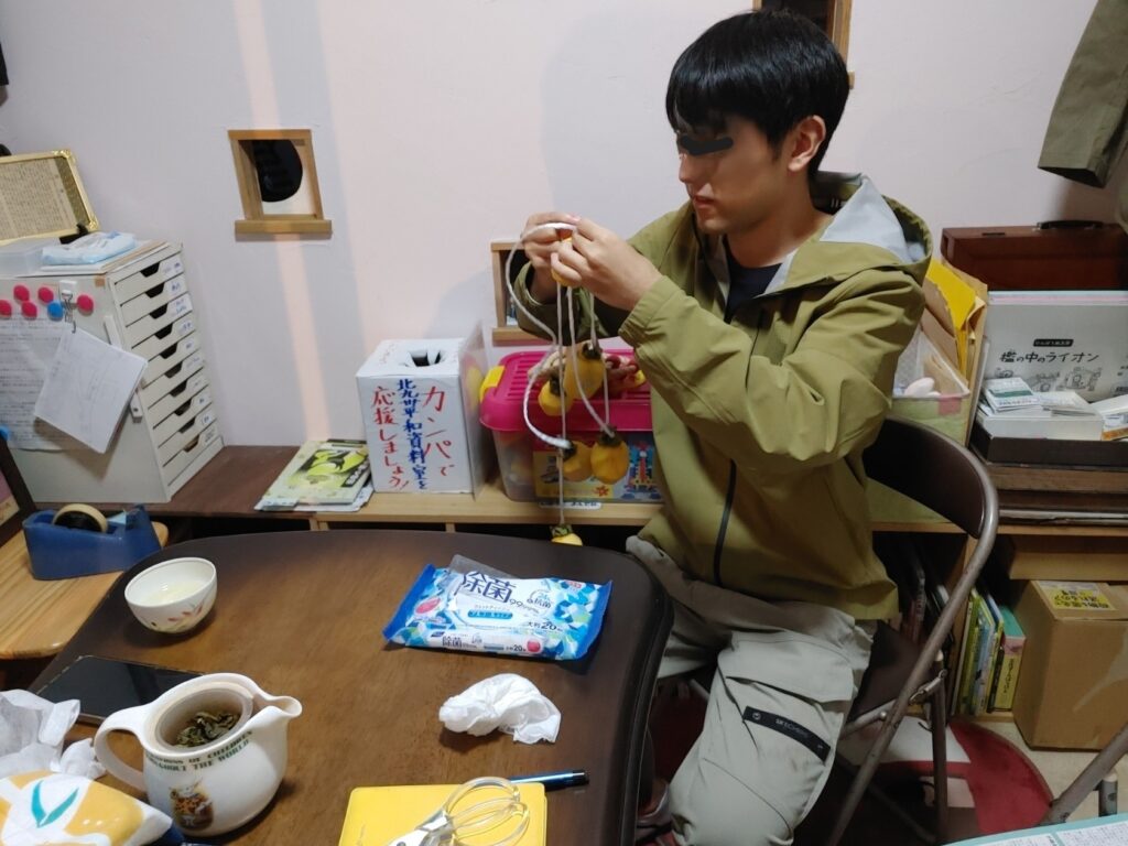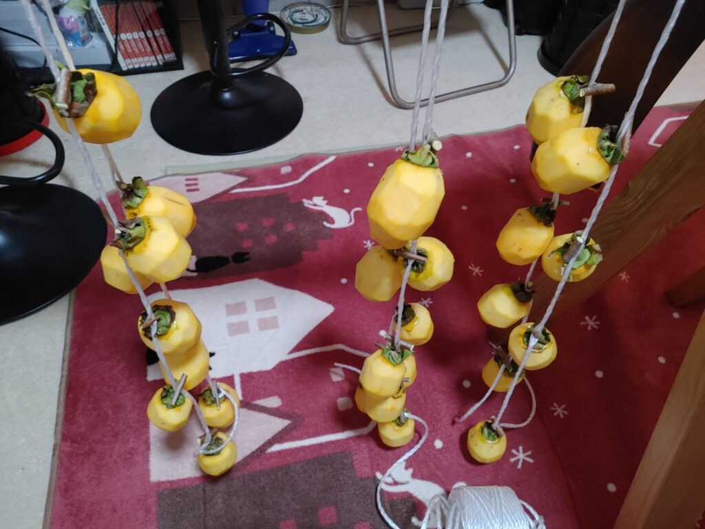 2週間前。一緒に干し柿を作りました。