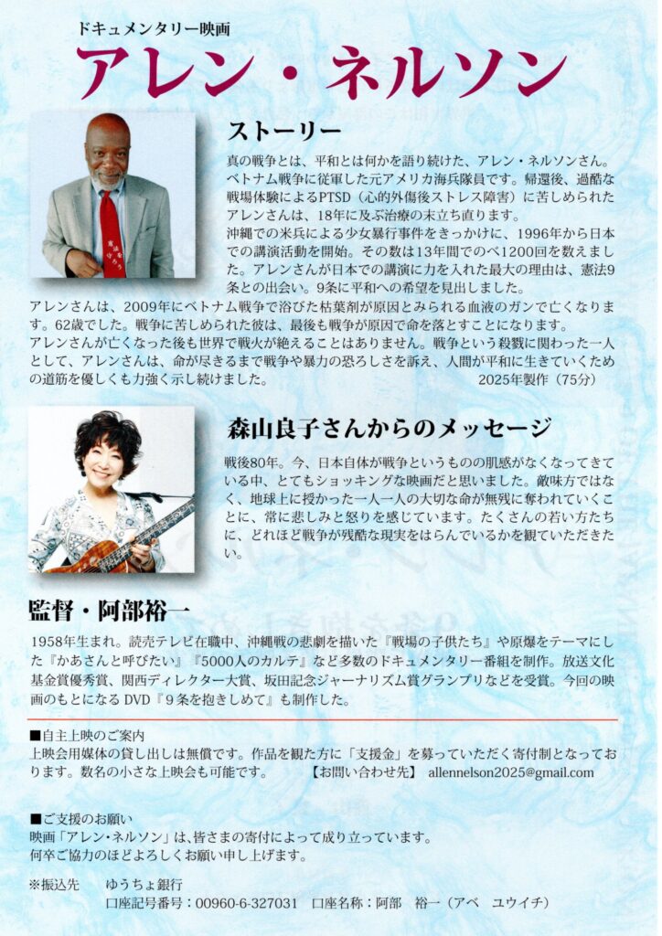 映画『アレン・ネルソン 9条を抱きしめて』上映会をTICO PLACE で行います (2026.1.5 記)